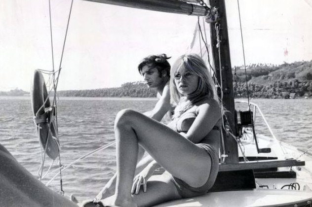 Есть много снимков, где актриса на борту яхты, но самая известная фотосессия – это когда в 1968 году звездная пара Брижит Бардо и Ален Делон были гостями у Эрика Табарли на его яхте Pen Duick III (об этом визите в статье на сайте YR https://www.yachtrussia.com/articles/2016/11/14/articles_414.html).