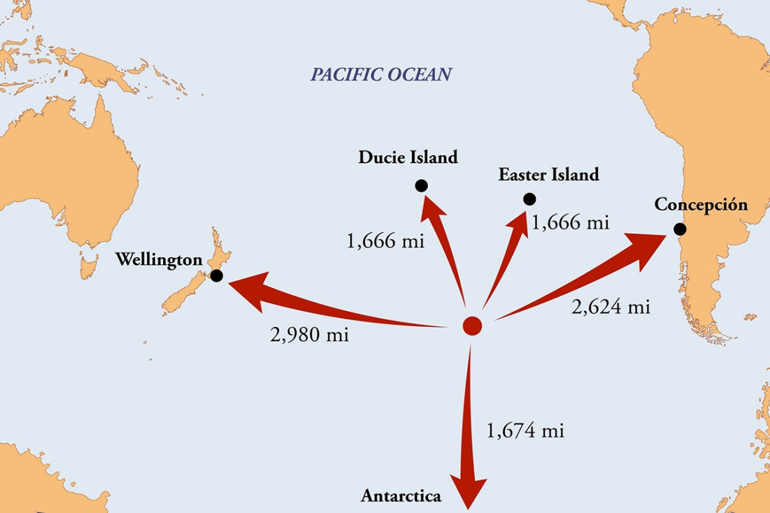 Кстати, о точке Немо (Point Nemo), она же Океанский полюс недоступности. Это условная точка в Мировом океане, наиболее удаленная от какой-либо суши. Ее координаты 48°52.6′ южной широты и 123°23.6′ западной долготы. Была вычислена методом компьютерного моделирования в 1992 году хорватским ученым Хрвойе Лукателлой. Им же было предложено ее название в честь «беглеца от человечества» капитана Немо, героя романов Жюля Верна. Но! Задолго до того Говард Лавкрафт в рассказе «Зов Ктулху» писал о затонувшем городе, где спит подводное чудище, и приведенные им координаты всего на 1° отличаются от координат Полюса недоступности.