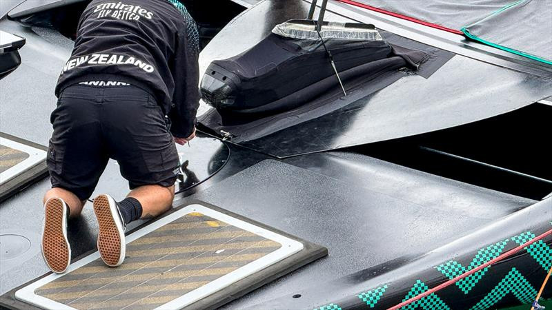 Покрасовавшись перед народом, как модница перед зеркалом, Taihoro позволил  провести над собой ряд манипуляций (явно необязательных) техникам команды, после чего лодку отбуксировали на остров Браунс, на базу Emirates Team NZ. Вот там, уже за закрытыми дверями, в обстановке строжайшей секретности его будут «доводить до ума».