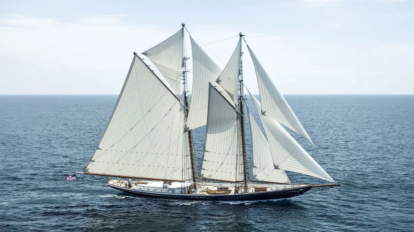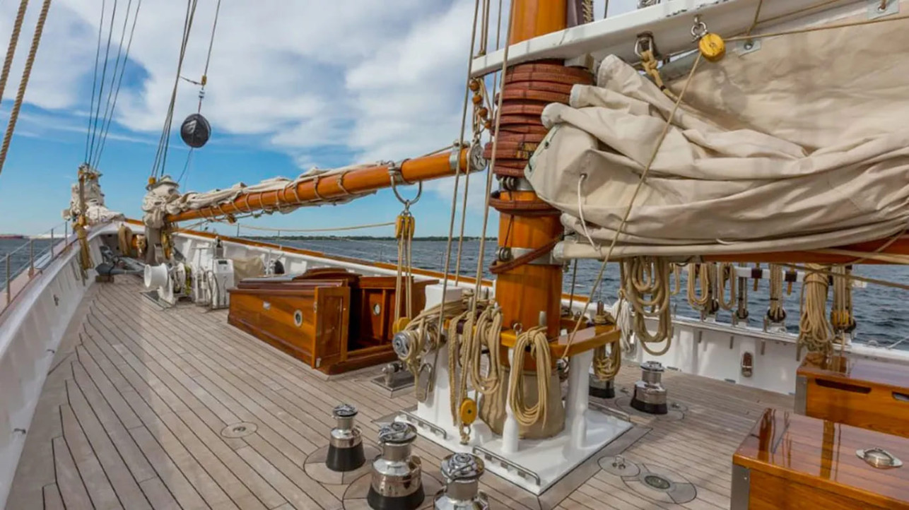 Вообще-то ей предстояло быть воссозданной деревянной, согласно проекту 1923 года, авторство которого принадлежит знаменитому Уильяму Берджесу. Но по зрелому размышлению от этого отказались, потому что некогда рыболовная шхуна (оригинальная Columbia затонула в 1927 году во время шторма у острова Сейбл, весь экипаж погиб) с рядами коек и огромным холодильным трюмом должна была превратиться в суперъяхту.