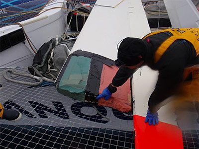 В субботу, 5 февраля, Паскаль Бидегори объявил о выходе тримарана Banque Populaire V из гонки и прекращении первой попытки завоевать Кубок Жюля Верна.
